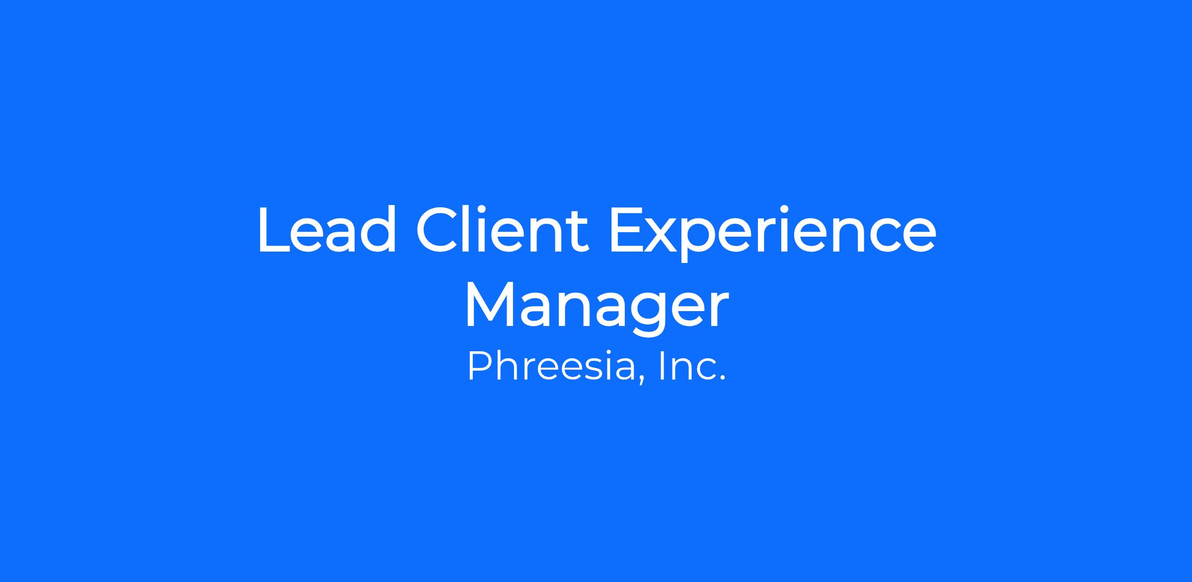 We are seeking a digital media leader with strong communication and problem-solving skills to join us as a Lead Client Experience Manager on our Network Solutions team (Learn more about Network Solutions at https://networksolutions.phreesia.com/)