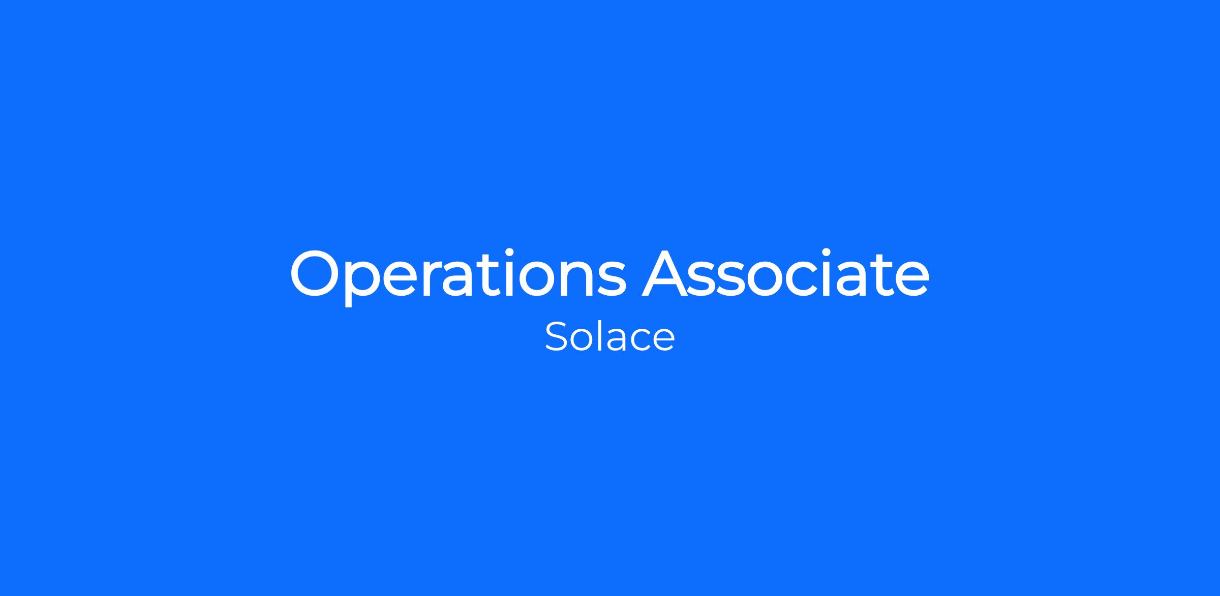 As the Operations Associate at Solace, you are responsible for bringing value to our users by doing whatever Solace needs. You will be expected to take general tasks and simply execute at the highest level.