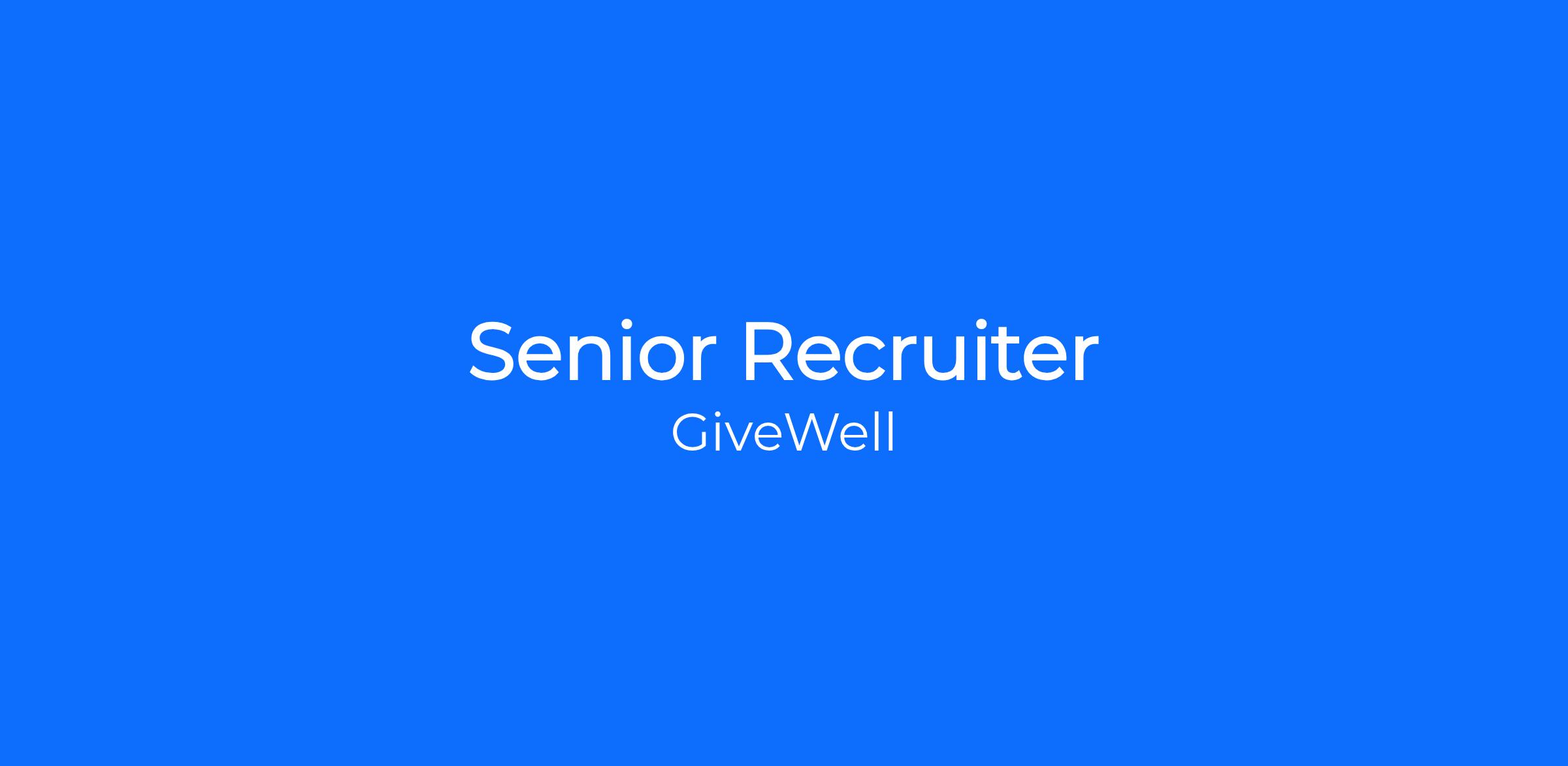 GiveWell is growing fast to move more donations to where we think they will do exceptional good for people in need. But it takes unique talent to thrive here, and finding those candidates requires much more than posting jobs and screening resumes. We're hiring a Senior Recruiter who will actively search for exceptional people, uphold an extremely high bar, and serve as a true thought partner to leaders across the organization — because the quality of our hires is key to how many lives we can save and improve.
